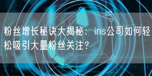ins公司通过精准定位目标群体、创意十足的营销内容、借助明星与网红的力量、运用多元化的传播渠道、与粉丝互动建立信任以及数据分析优化策略等方法,轻松吸引大量粉丝关注。品牌在社交媒体的影响力不断提升,为公司的长远发展奠定了坚实基础。
