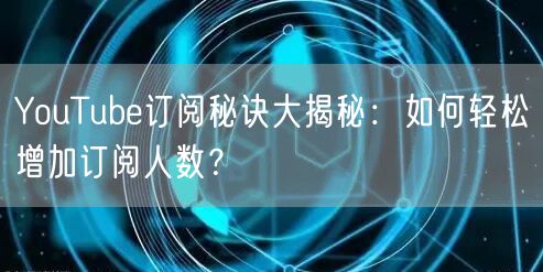 在YouTube上,拥有众多订阅者对于内容创作者来说无疑是一种巨大的成功。那么,如何轻松增加订阅人数呢?本文将为你揭示YouTube订阅的秘诀,帮助你在这个竞争激烈的平台上脱颖而出。