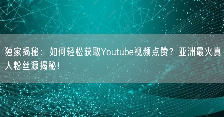 独家揭秘:如何轻松获取Youtube视频点赞?亚洲最火真人粉丝源揭秘!