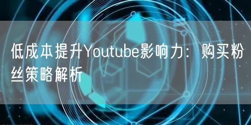 随着社交媒体的发展,Youtube已成为全球最受欢迎的社交媒体平台之一。越来越多的个人和企业希望通过Youtube扩大影响力,但如何低成本提升Youtube影响力却是一个挑战。本文将重点解析购买粉丝这一策略,助您在Youtube上获得更多的关注和成功。