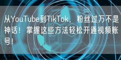 总之,从YouTube到TikTok,粉丝过万不是神话!只要您掌握这些方法,轻松开通视频账号,吸引大量粉丝。让我们一起努力,在视频领域崭露头角,实现自己的网红梦想!