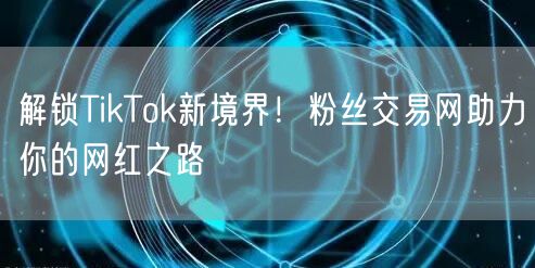 随着互联网的普及和社交媒体的兴起,越来越多的人开始追逐成为网红的梦想。TikTok作为一款全球热门的短视频社交平台,吸引了众多年轻人的目光。然而,想要在TikTok上脱颖而出,成为一名具有影响力的网红并非易事。这时,粉丝交易网的出现,为追求网红梦想的人们带来了全新的助力。